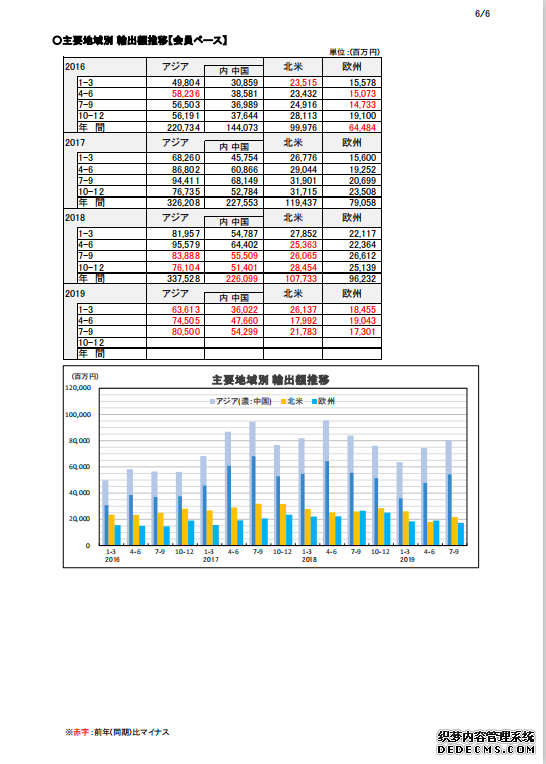 对中国,欧洲和美国出口目的地的下降趋势没有变化。对中国的销售额与去年持平。去年强劲的欧洲经济放缓是显而易见的。最为年末冲刺的最后一季度数据,是否会借着12月的日本机器人展会迎来新的爆发?我们将跟踪报道,届时请拭目以待。