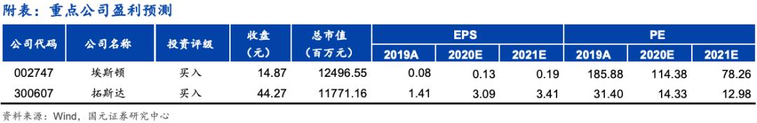经初步统计,2019年我国工业机器人市场规模达到57.3亿美元,随着2020年工业机器人行业逐步复苏,国产机器人有望凭借行业东风、实现市场规模的进一步扩张。我们看好掌握运控核心技术的本体龙头埃斯顿、具快速扩张能力的系统集成龙头拓斯达。